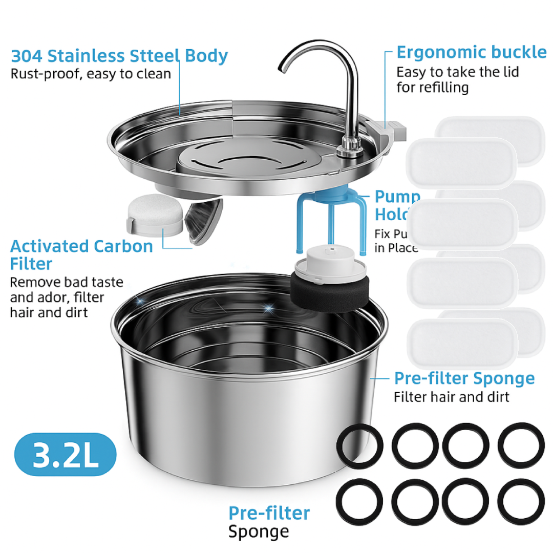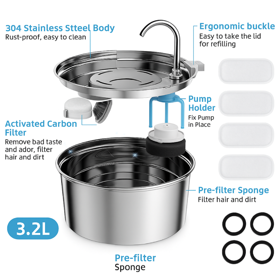 To keep the water fresh and clean, we recommend replacing the filter every 2 weeks.
